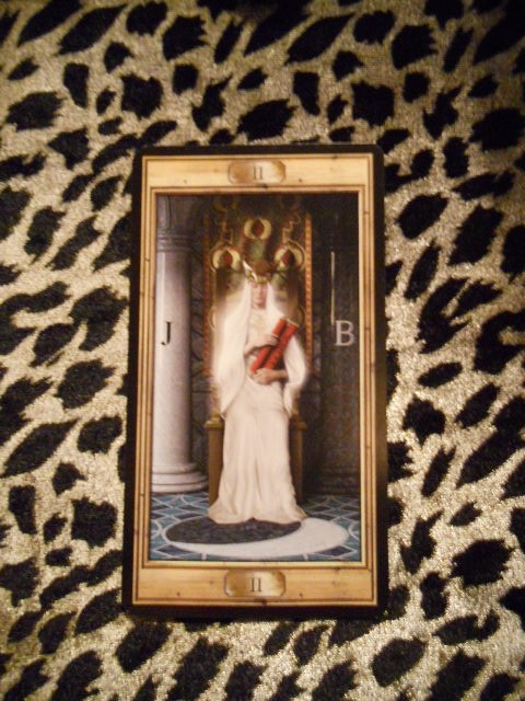 THE HIGHT PRIESTESS หมายถึง ลางสังหรณ์ สัญชาติญาณพิเศษที่มีความชำนาญมากกว่าฅนทั่วไป ในการรับรู้เรื่องราวที่กำลังจะเกิดขึ้น ซิกเซ้นสัมผัสที่ทำให้รุ้เหตุล่วงหน้าและรู้ถึงสิ่งที่ฅนทั่วไปรับรู้ไม่ได้ การอธิฐานขอพร การบนและการแก้บน อารณ์ความรู้สึกที่แปรปวน ความสัมพันธ์ชู้สาว มีเสน่าห์มาก สนใจในความสวยงามความหล่อเป็นพิเศษ