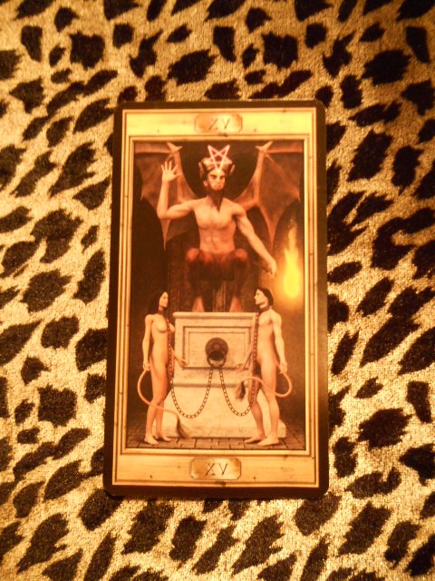 วิธีการแก้ไข ตั้งสติอย่าให้ใครมาเอาเปรียบกับชีวิตเรา เที่ยวเพื่อเรียนรู้ ประสบการณ์ รับฟังคนตักเตือน สั่งสอน รับผิดชอบหน้าที่ให้ดีก่อน ยอม รับและกล้าเปลี่ยนแปลงความคิดและชีวิตตัวเอง ความเข้าใจ เบื้องต้นไพ่ใบนี้เป็นตัวแทน ปีศาจ กิเลส ตัณหา กำลังเกี่ยวข้องกับ สื่งผิดกฏหมายหรือทำสิ่งที่เลี่ยงกฏหมายวิญญาณ ผูกพัน
